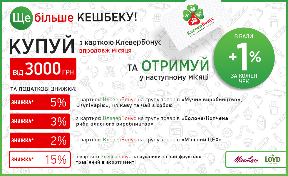 Робіть покупки з карткою «КлеверБонус» у супермаркетах: