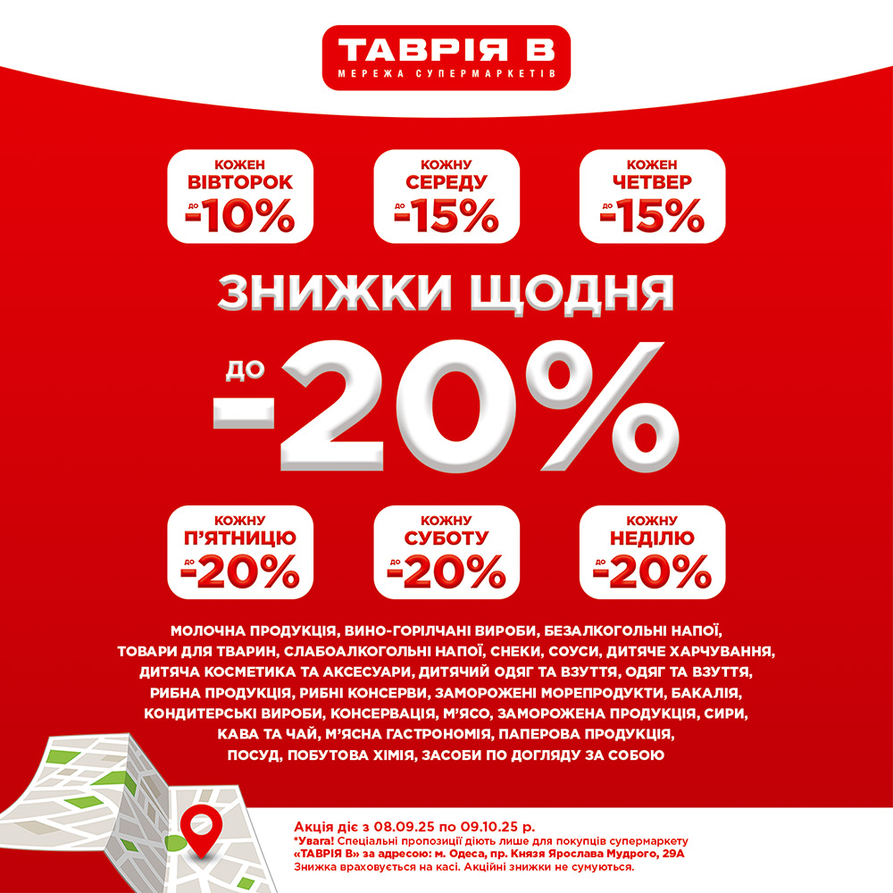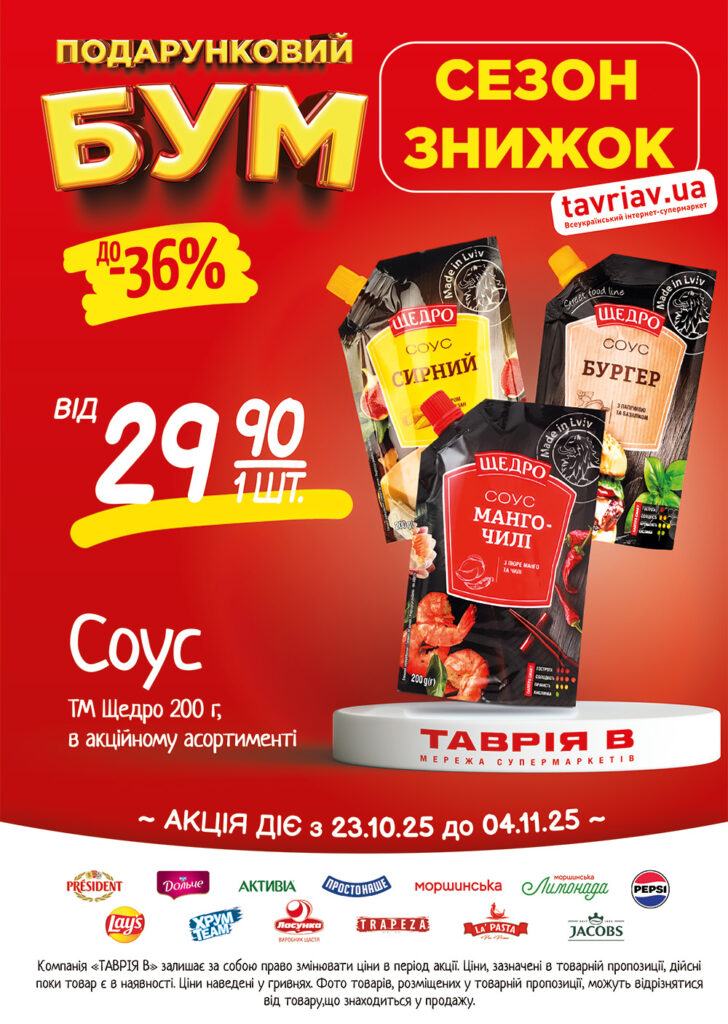 *Пропозиція діє у мережах партнерів, окрім інтернет-магазину tavriav.ua