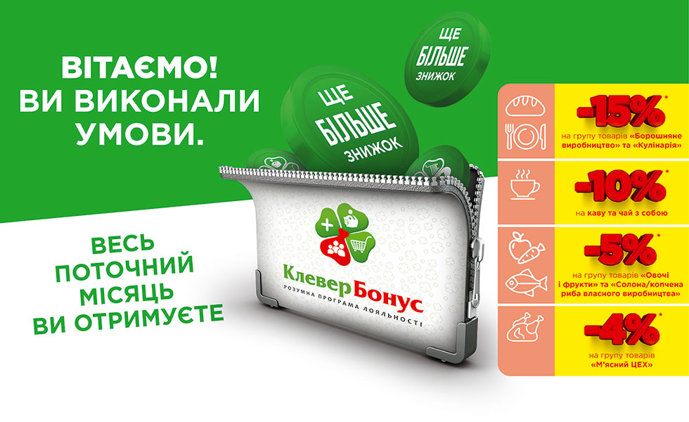 Отримуйте додатково цілий місяць знижок з карткою «КлеверБонус».