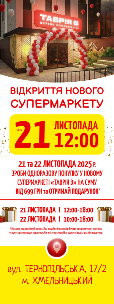 Запрошуємо на відкриття нового супермаркету ТАВРІЯ В!