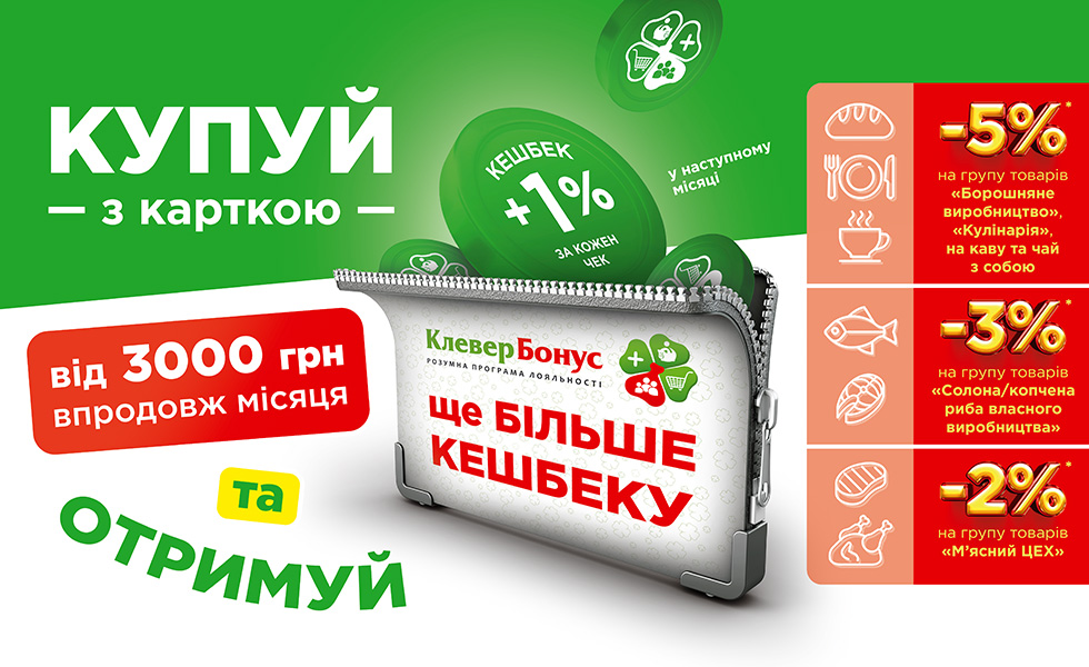 Отримуйте додатково цілий місяць знижок з карткою «КлеверБонус» у цих мережах.