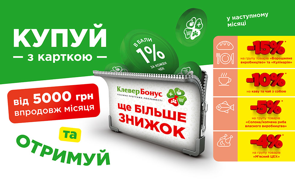 Отримуйте додатково цілий місяць знижок з карткою «КлеверБонус» у цих мережах.