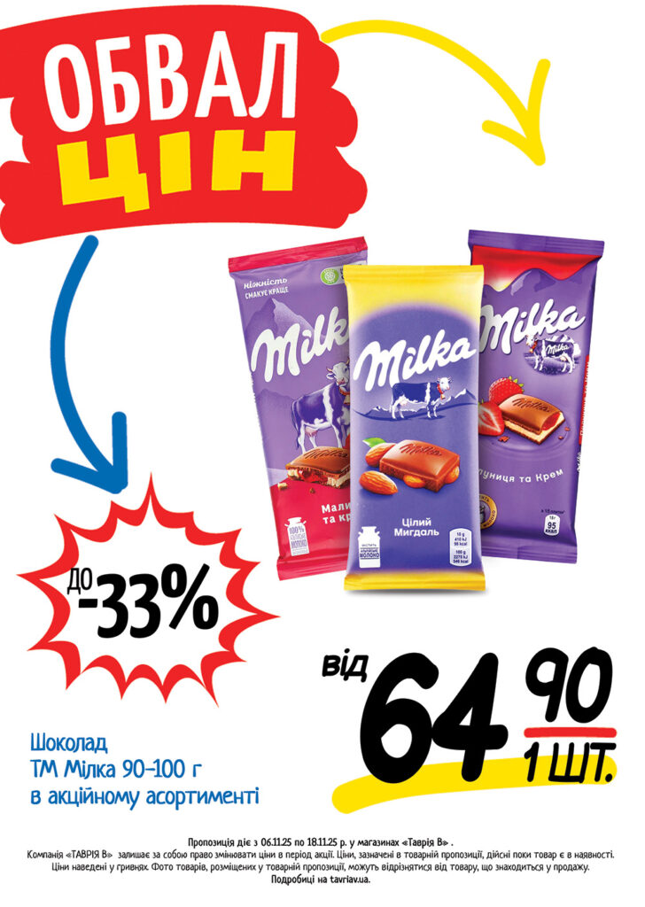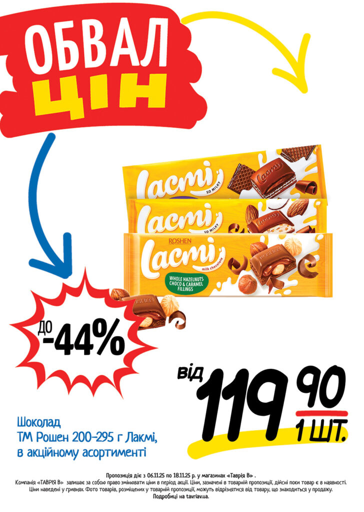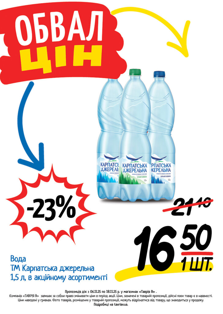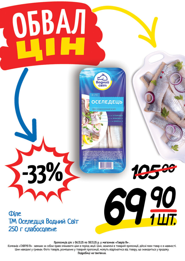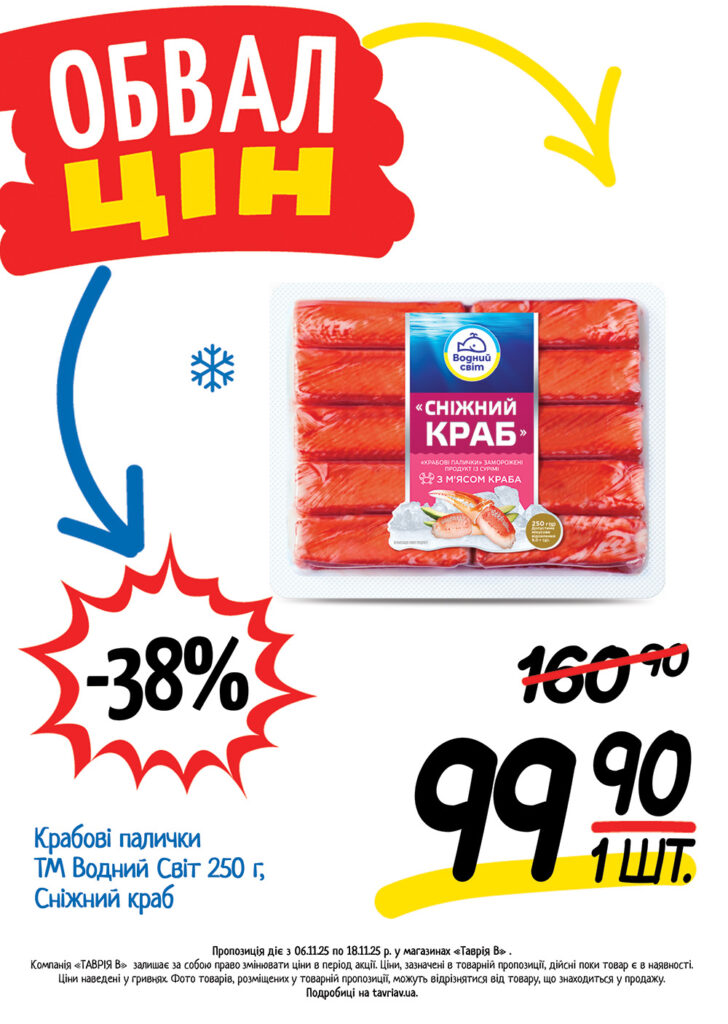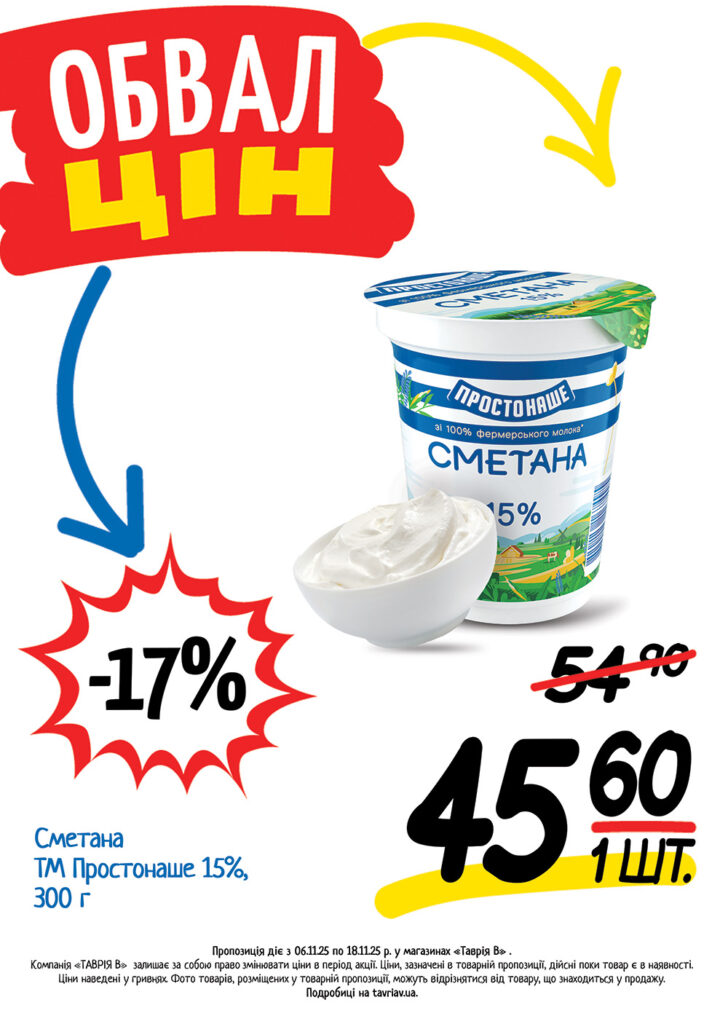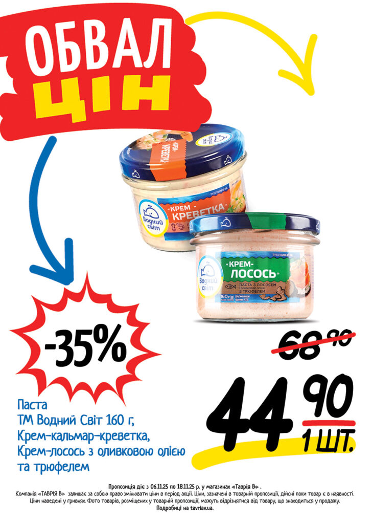 З 06.11 2025 по 18.11.2025 р. в супермаркетах «ТАВРІЯ В» діє акція «Обвал Цін». Ви можете заощаджувати на купівлі продуктів, дитячого харчування, засобів побутової хімії та догляду за собою.