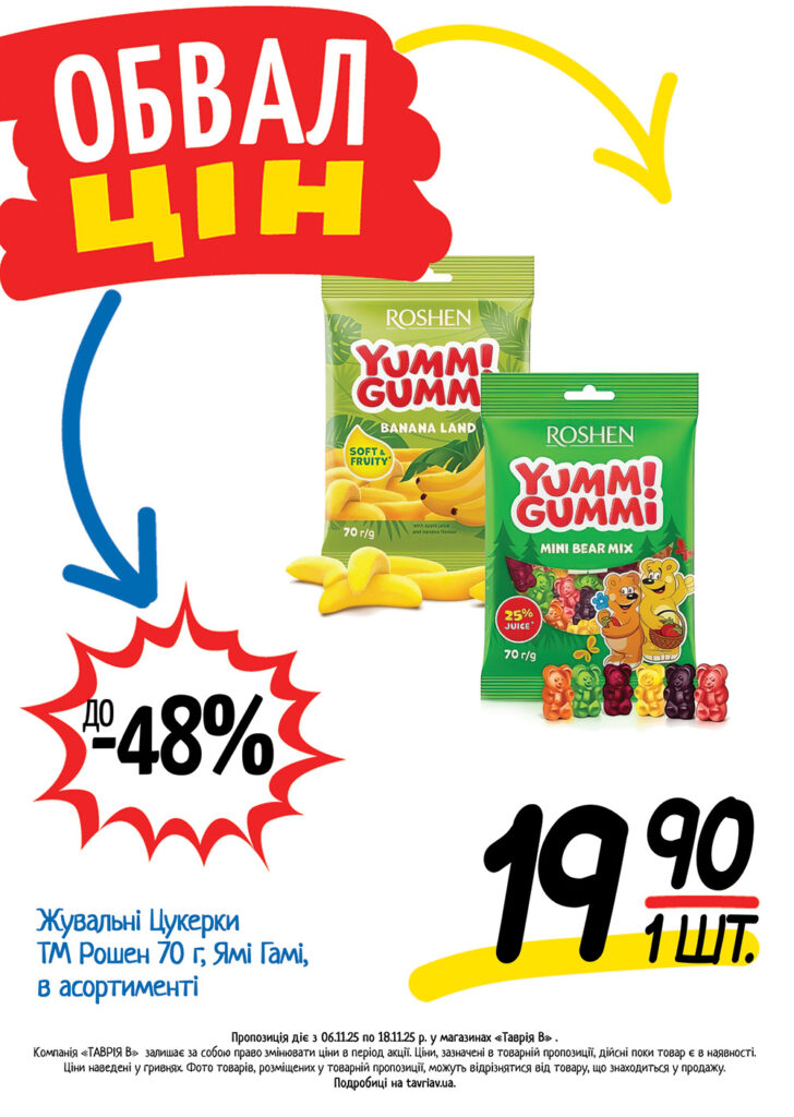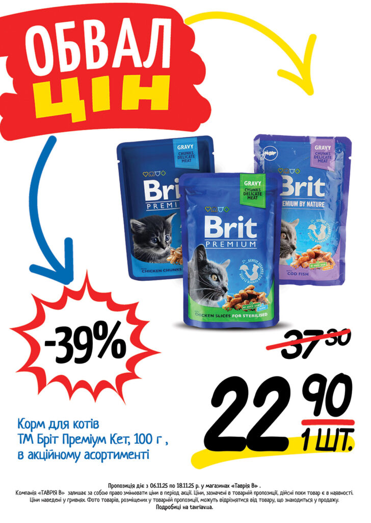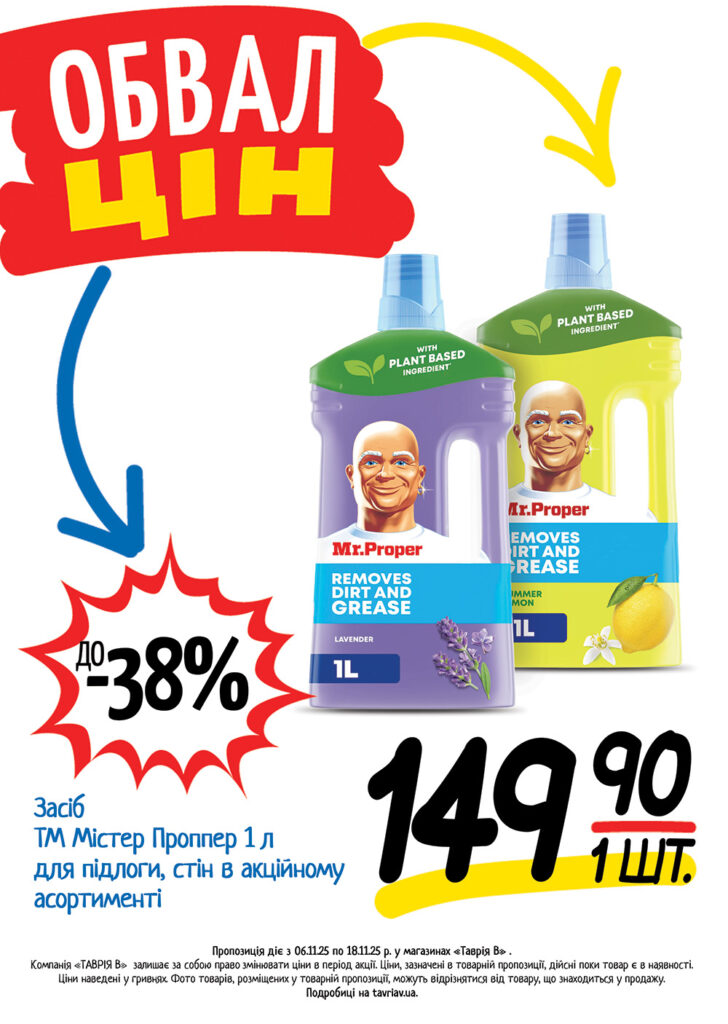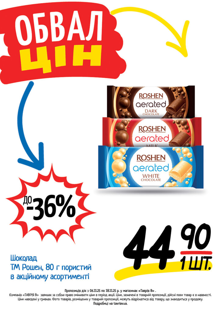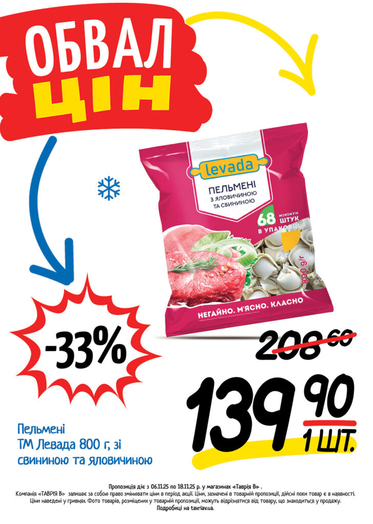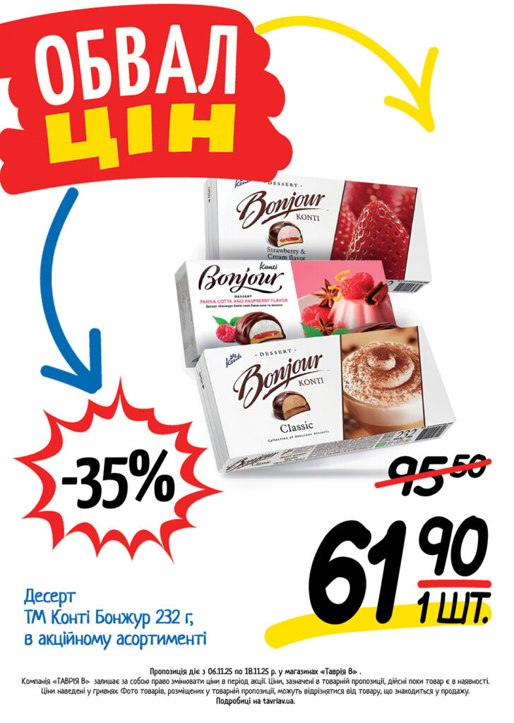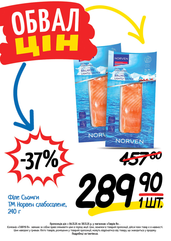 З 06.11 2025 по 18.11.2025 р. в супермаркетах «ТАВРІЯ В» діє акція «Обвал Цін». Ви можете заощаджувати на купівлі продуктів, дитячого харчування, засобів побутової хімії та догляду за собою.
