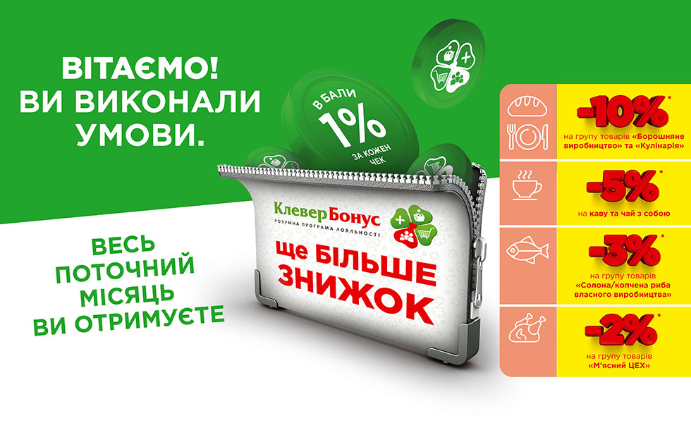 Робіть покупки з карткою «КлеверБонус» у супермаркетах: